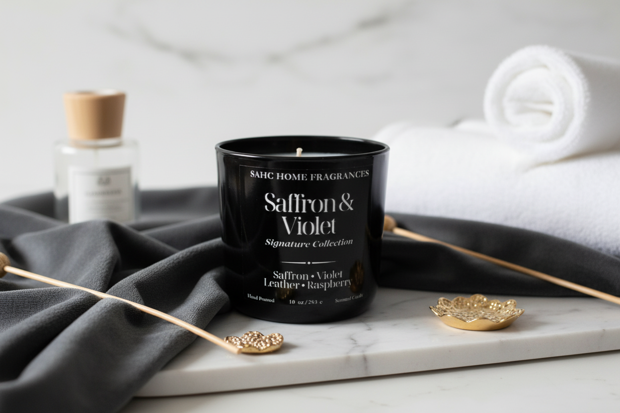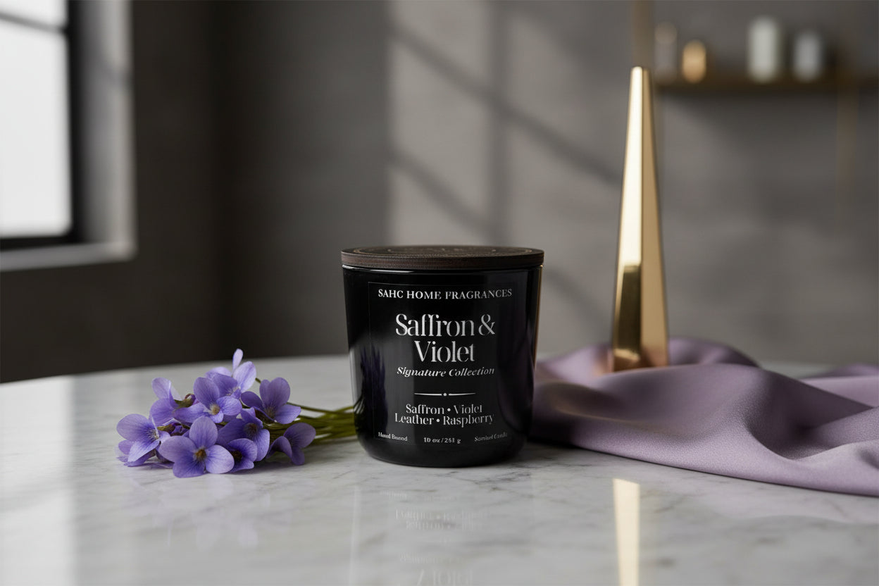 Embrace the allure of the unknown. Our Violet & Saffron candle is a seductive, multi-layered fragrance that brings an air of mystique to your space. It balances delicate, powdery florals with the rugged sophistication of leather and vetiver, creating a scent that is both ethereal and grounded. Every piece is hand-poured in small batches to ensure a slow, clean burn and a fragrance that beautifully fills the room. 10 oz. (283.4 g)